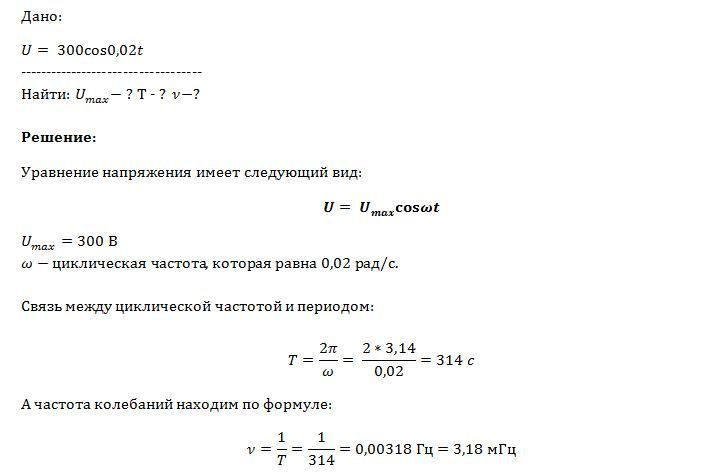 Помогите пожалуйста!) Напряжение на катушке в цепи переменного тока изменяется по закону u=300 cos 0,02t. Чему равны максимальное напряжение, период и частота колебаний напряжения? Буду очень благодарна;) И заодно еще один вопрос: в результате реакции ядра Al и а-частицы не появился протон и ядро...