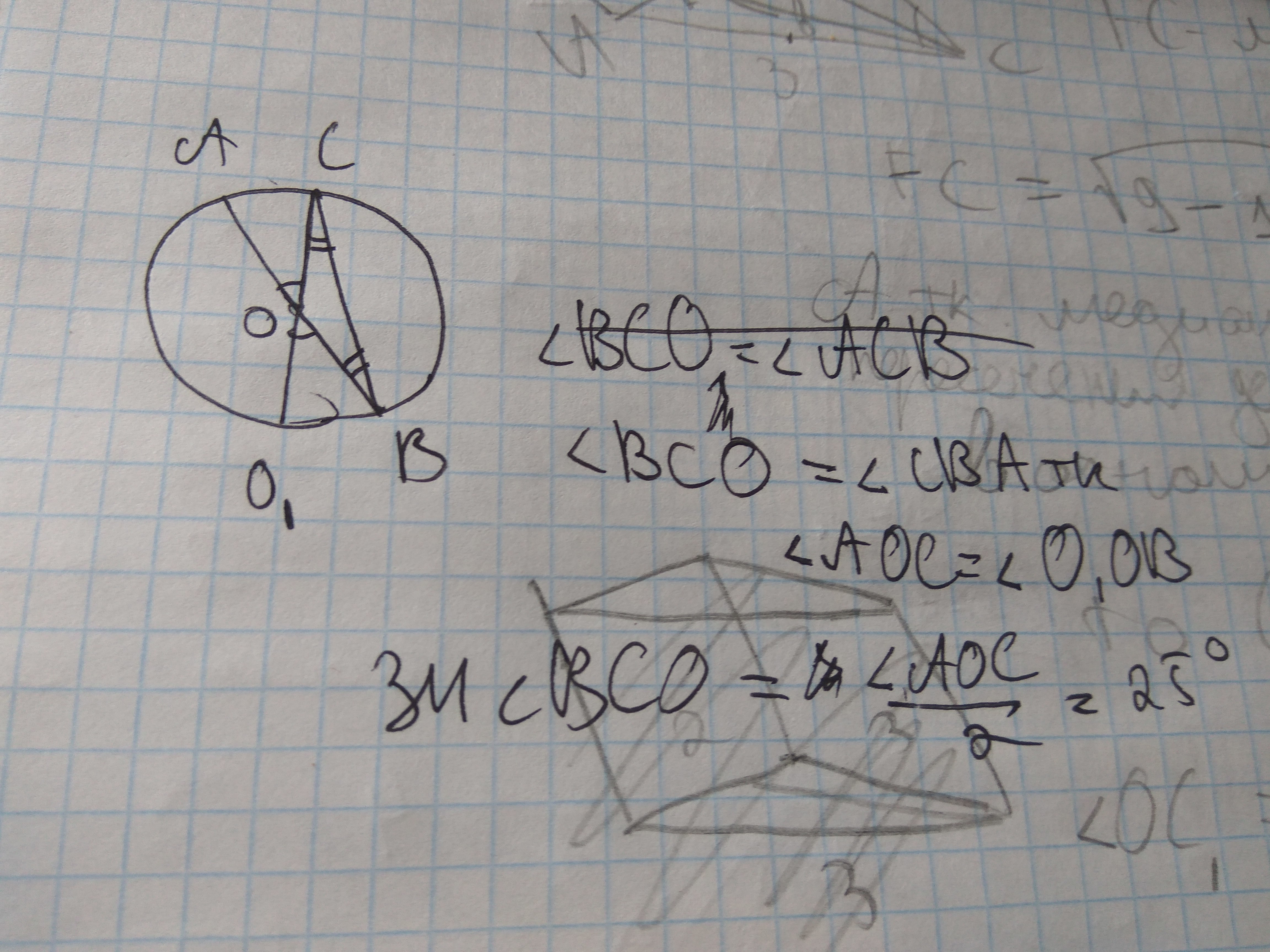 Мы достраиваем диаметр со1 и видим что АОС=о1ов ту они вертикальные