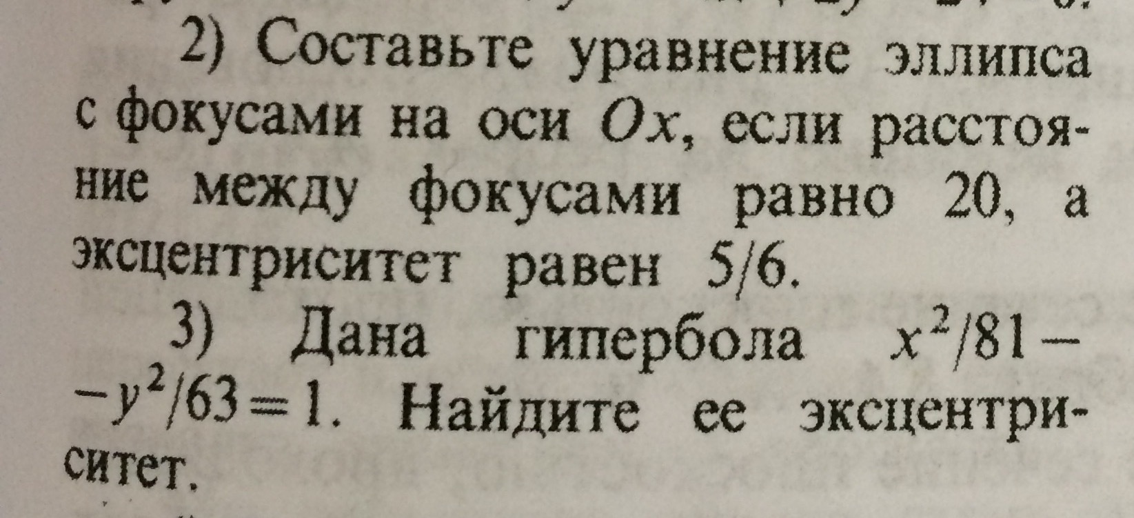 e=c/a=?(e>1), c=sqrt(a^2-b^2)-расстояние от центра C до любого из фокусов