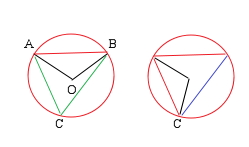 вписанного треугольника, лежащий против стороны АВ --- угол АСВ