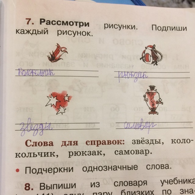 Подписал верно. Однозначные слова - самовар и рюкзак. Однозначные слова - это слова с одним значением.