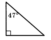 неизвестный угол равен 180°-90°-47°=43°