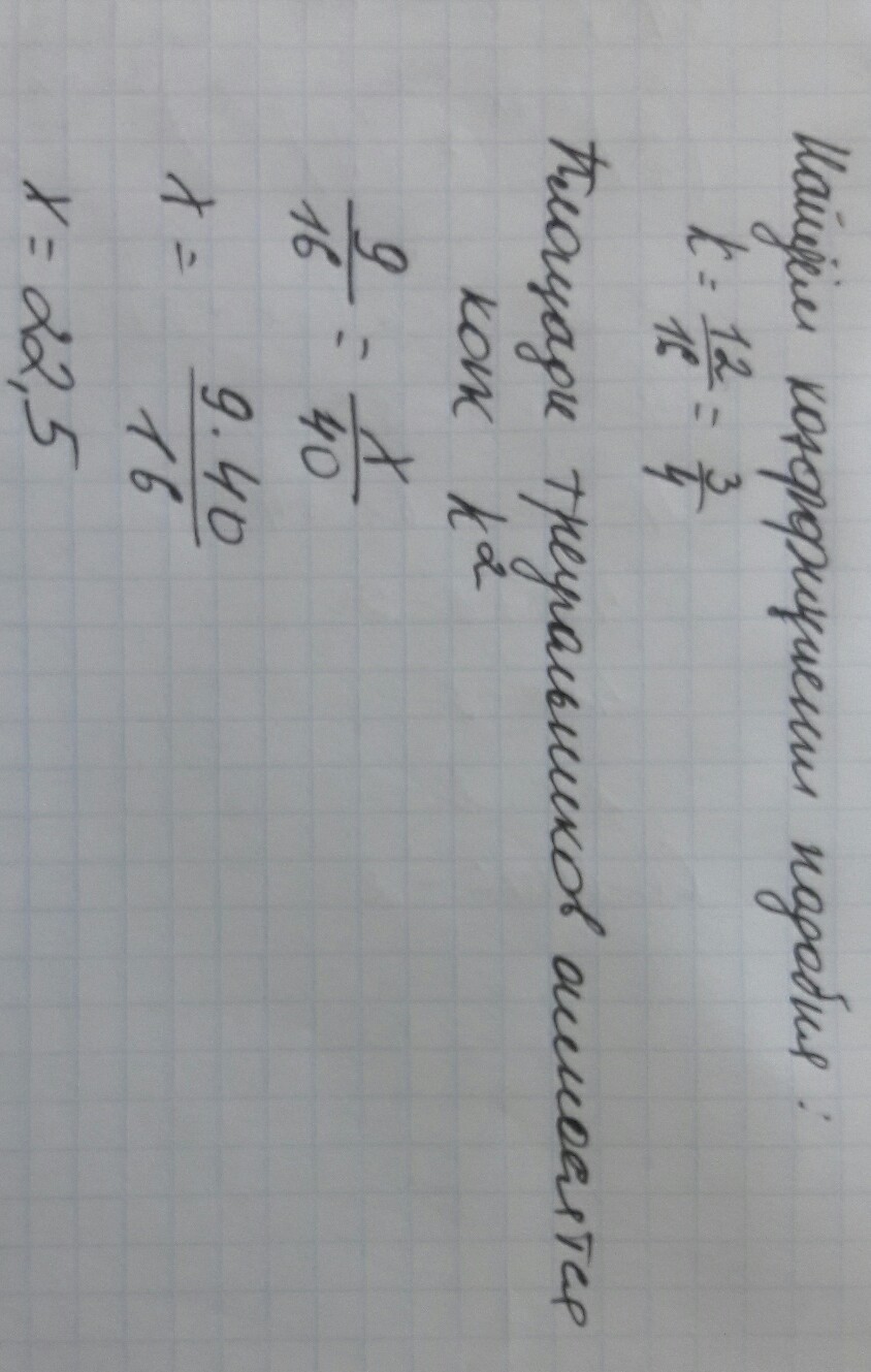 соответствующие стороны подобных треугольников равны 16 см и 12 см.Найдите площадь меньшего треугольника,если площадь большого равна 40 см в квадрате
