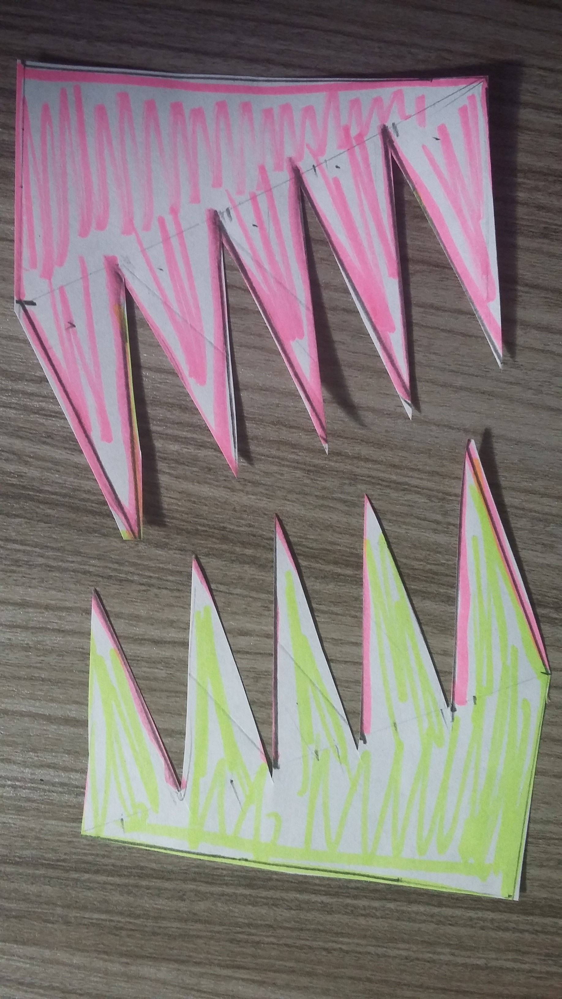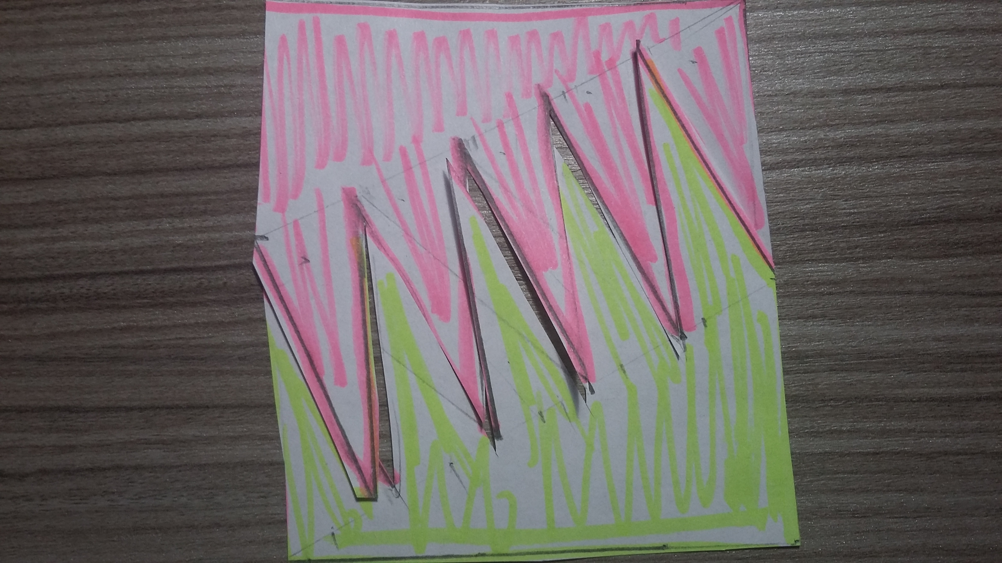 Надо разрезать зигзагом по середине, получится два зубатых куска!