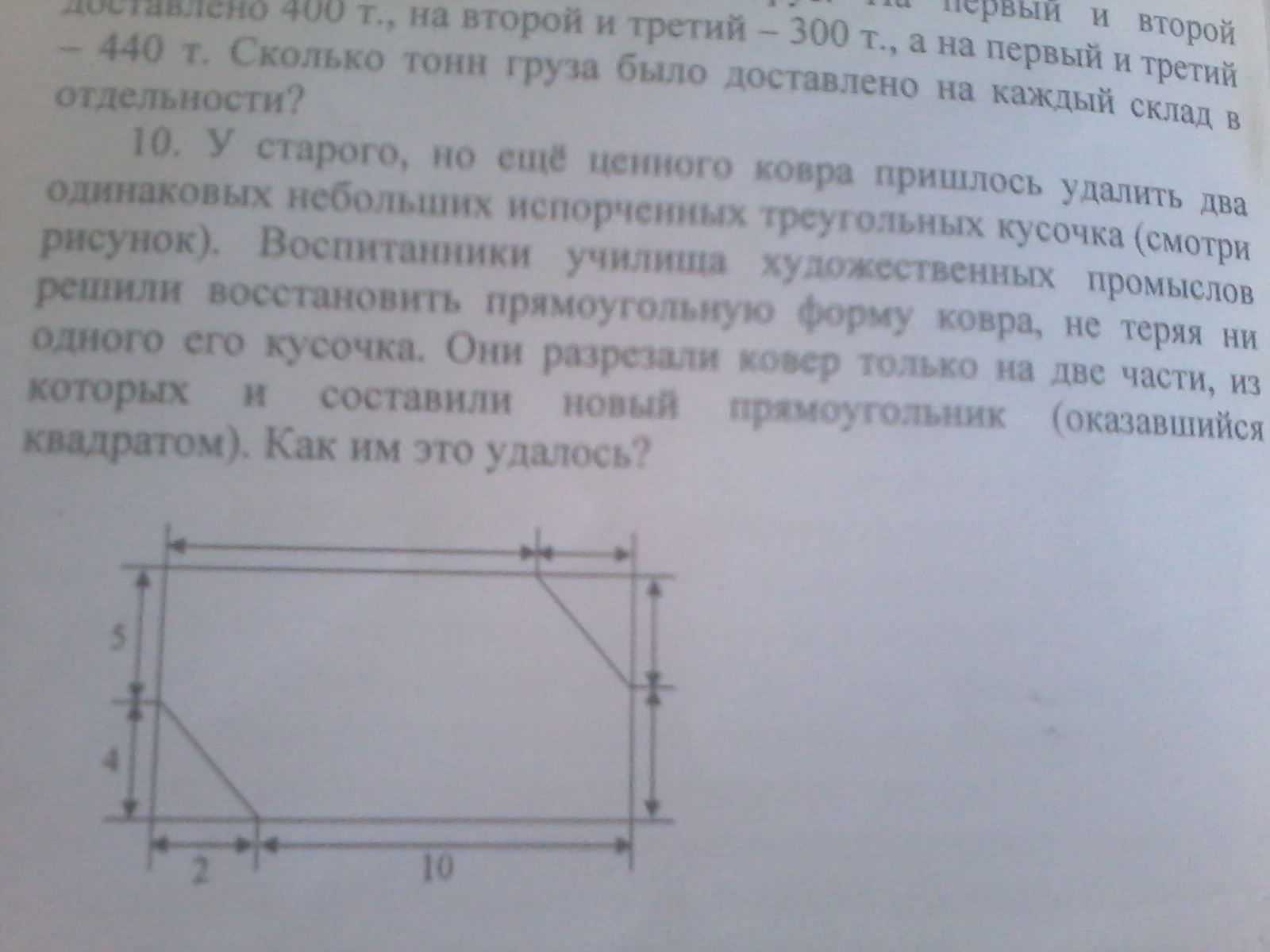 Если верхнюю часть переместить на 1 зуб вправо, то ковер примет форму квадрата.