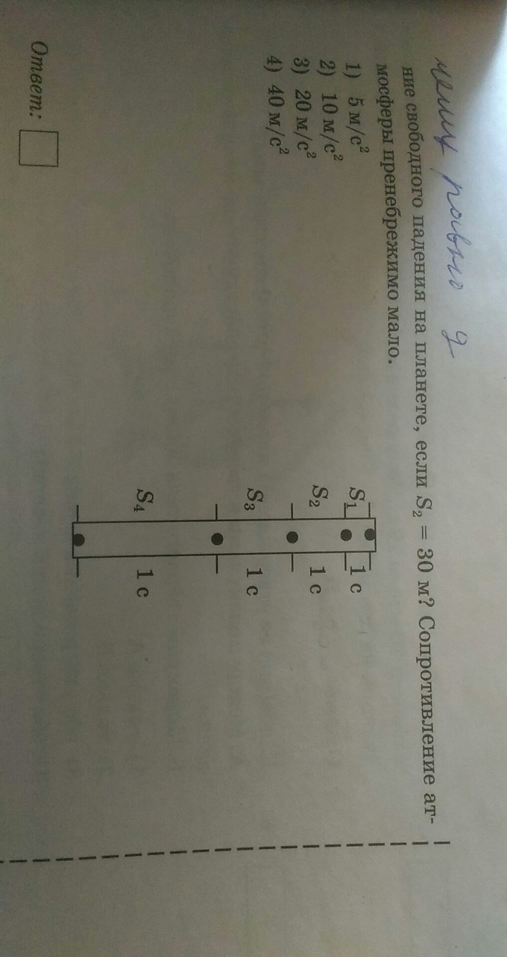 для тела свободно падающего из состояния покоя у поверхности некоторой планеты измерялись расстояния проходимые телом за последовательные равные промежутки времени .Чему равно ускорение свободного падения на планете если S2=30 метров .Сопротивление атмосферы пренебрежимо мало