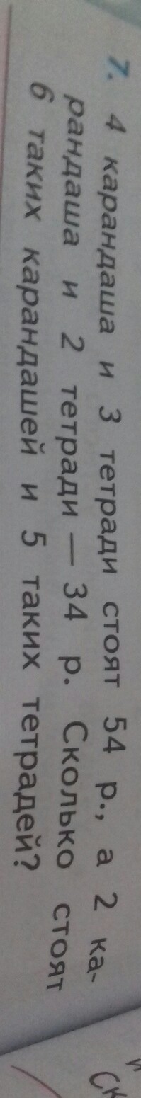 4карандаша + 3тетради = 54руб.