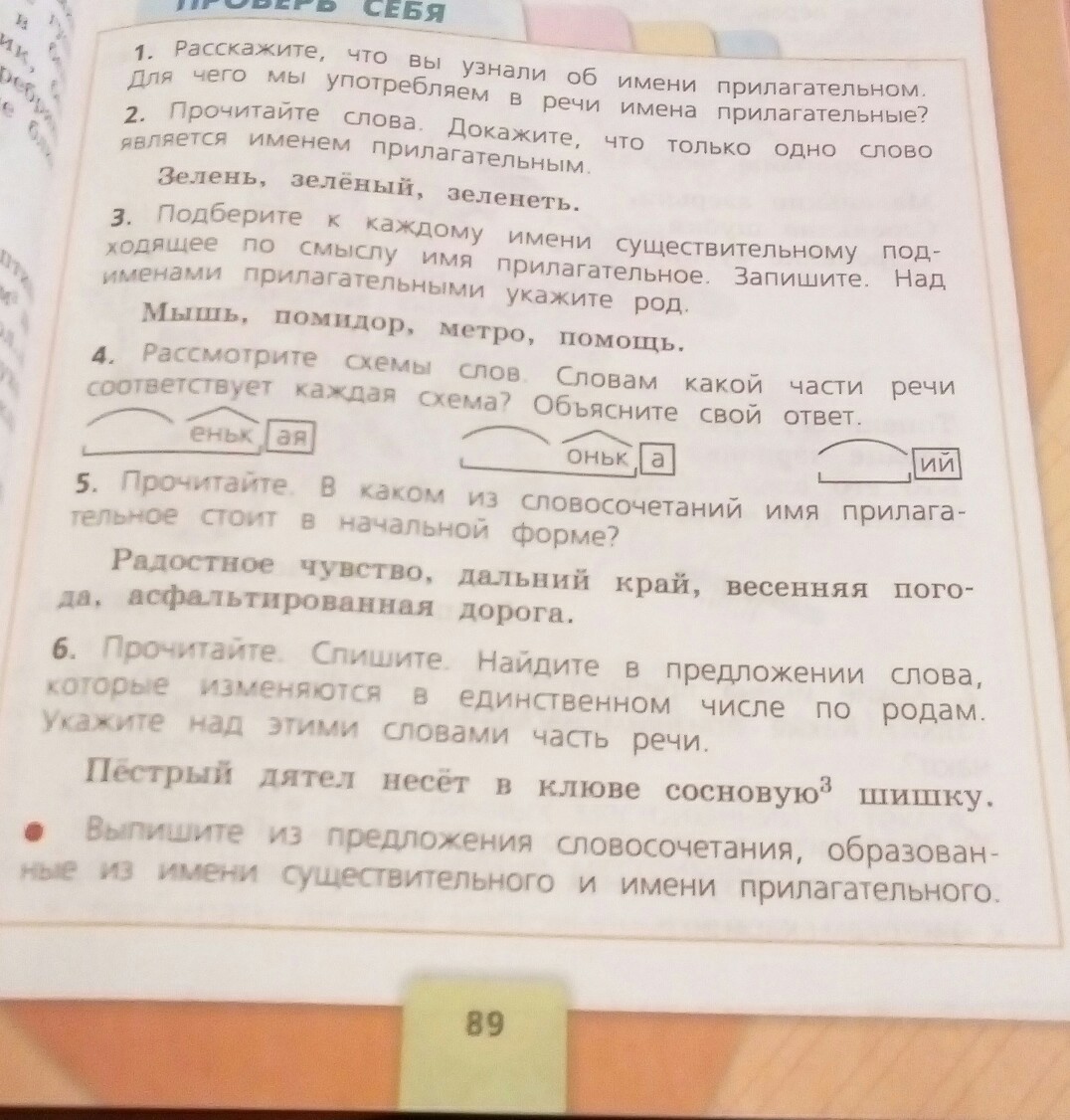 1-Мы узнали,что имя прилагательное это самостоятельная часть речи,которая описывает предметы,человека и т.д. Отвечает на вопросы какой? какая? какое? какие? и т.д. Может быть единственного и множественного числа. Мы употребляемый прилагательные в речи для описания чего либо. Может иметь три рода:мужской,женский и средний.