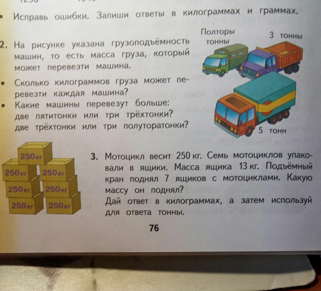 Дальше нам надо узнать сколько всего килограммов вмещают эти три грузовые машины.