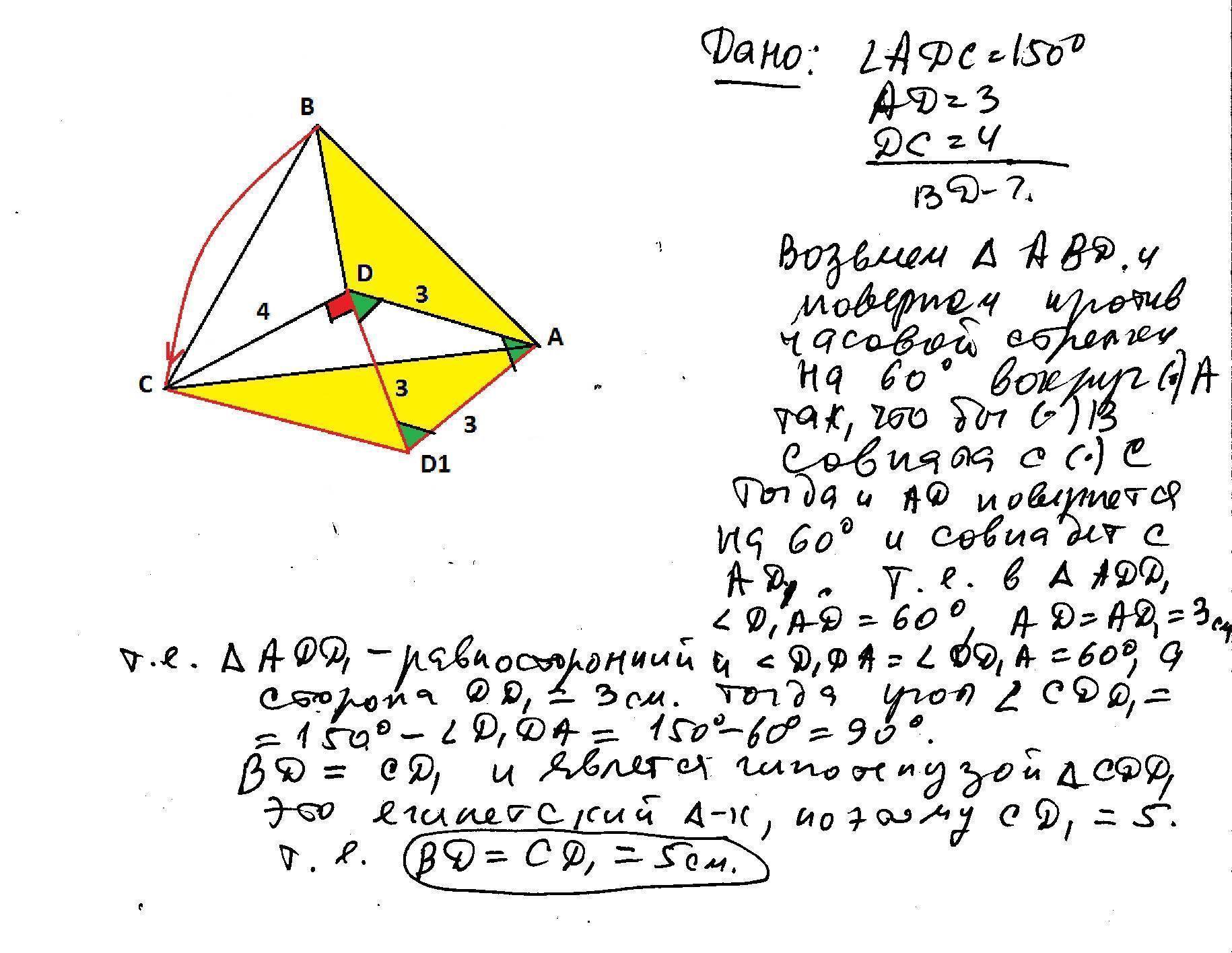 Решение точно такой же задачи только с другими цифрами вместо AD и DC расписао в картинке ниже. Если подставить вместо тех цифh 7 и 24, то получится BD^2=7^2+24^2=49+576=625