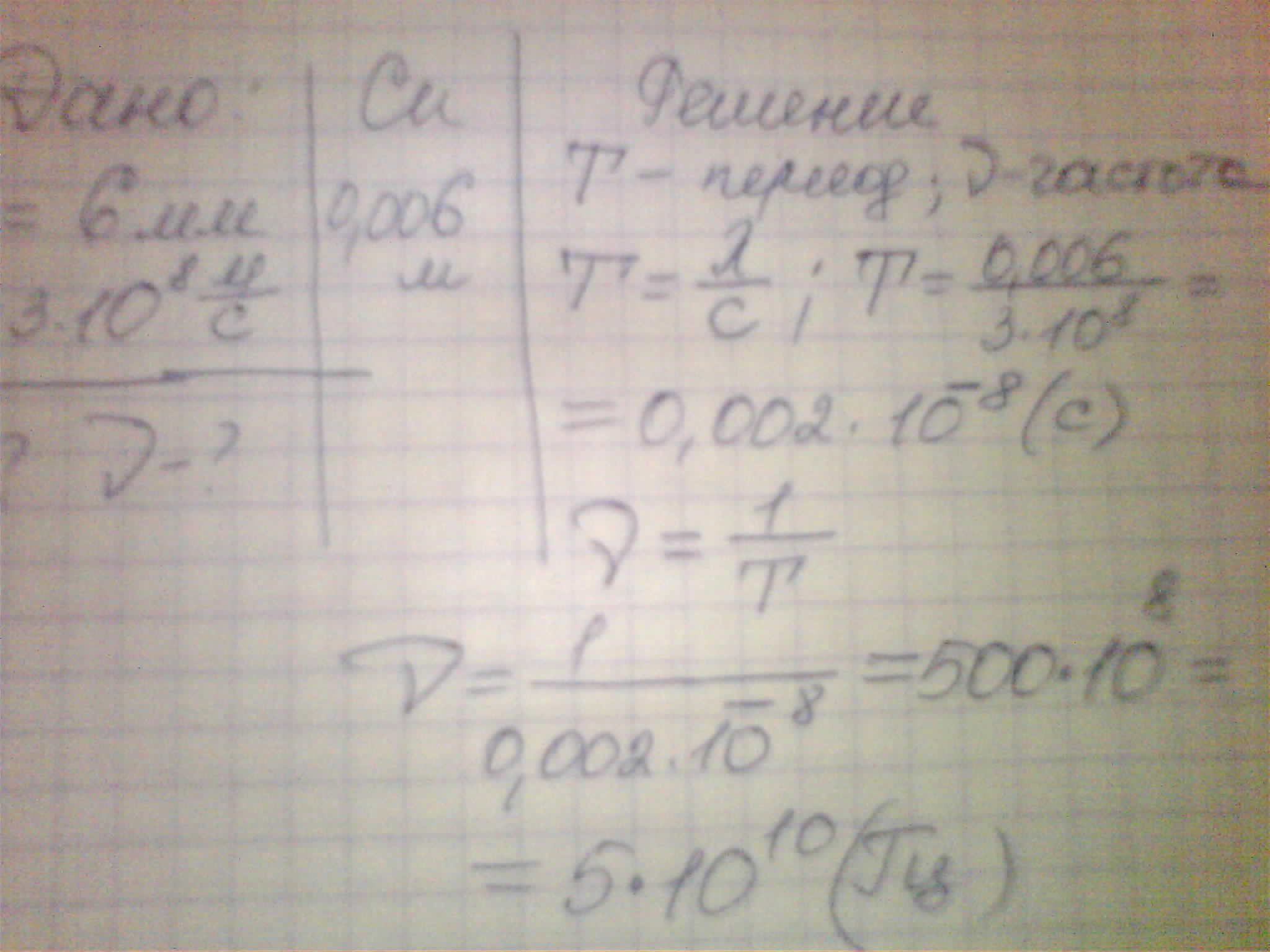 Вычислите период и частоту электромагнитных волн длинной 6 мм, полученных русским физиком П.Н. Лебедевым в 1897 г