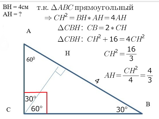 высота к гипотенузе --среднее геометрическое отрезков, на которые высота делит гипотенузу))