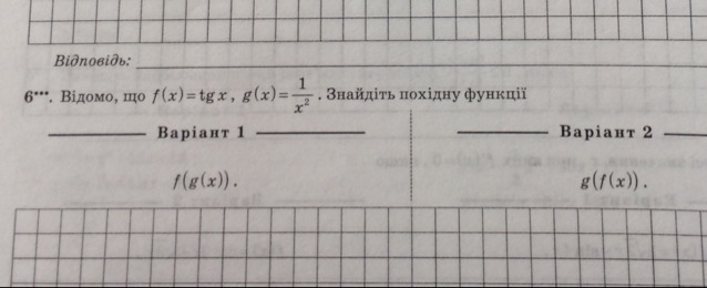 f(x)=tgx; ,; ; g(x)= frac{1}{x^2}\\g(f(x))= frac{1}{(tgx)^2} =frac{1}{tg^2x}; ,qquad (; (frac{1}{v})'=-frac{v'}{v^2}; )