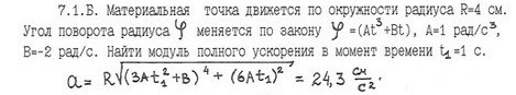 4) Полное ускорение a=sqrt(aц^2+aт^2)=sqrt((3*a*t^2+B)^4*R^2+(6*a*T)^2*R^2=R*sqrt(3*a*t^2)^4+(6*a*t)^2)