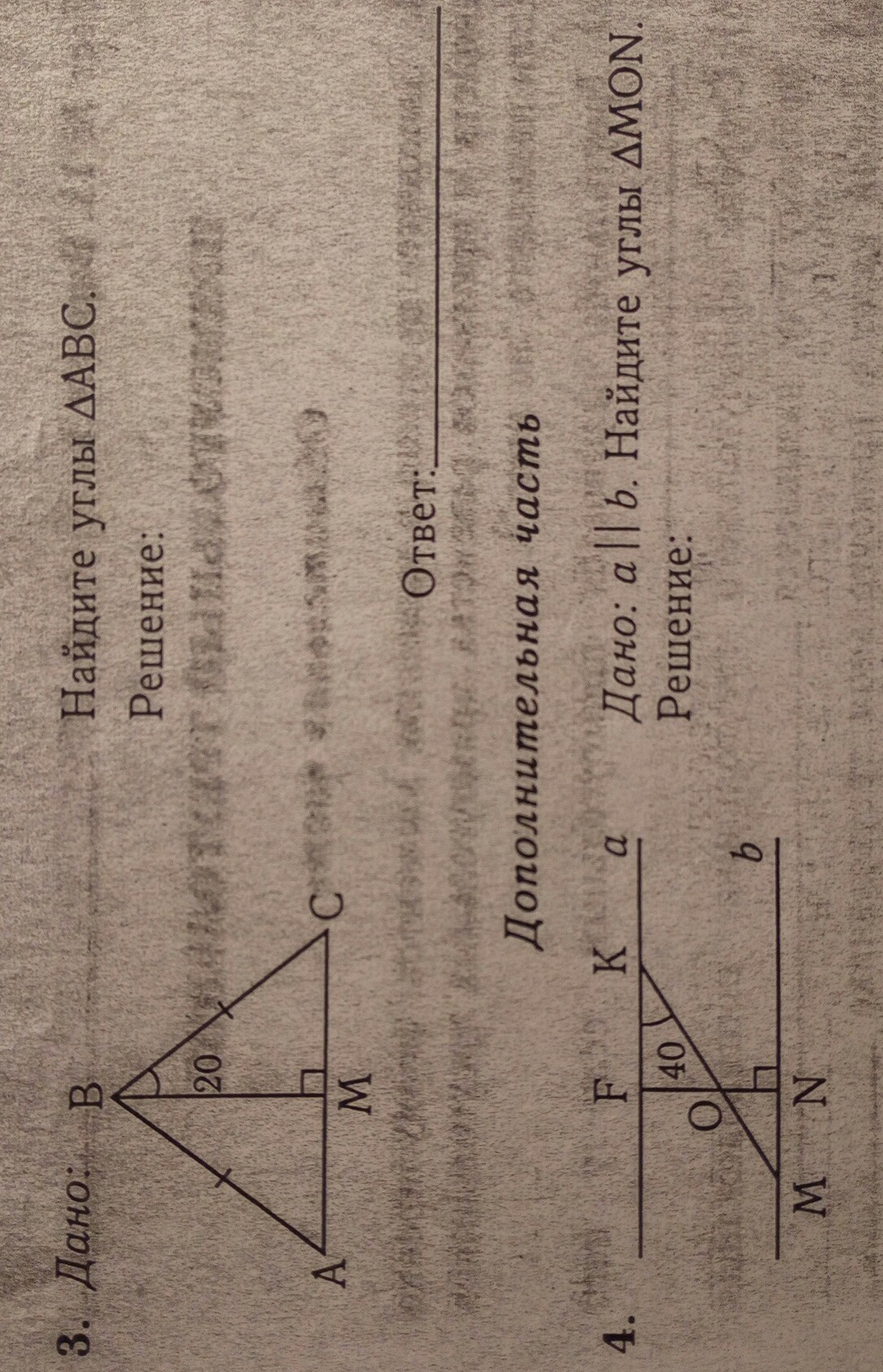 У тебя дан пол угла В тоесть 1/2. Угол В равен 40 градусов. АВ и ВС равны. По условию треугольник равнобедренный. В треугольнике всего 180 градусов. Значит 180-40=140:2=70 градусов.