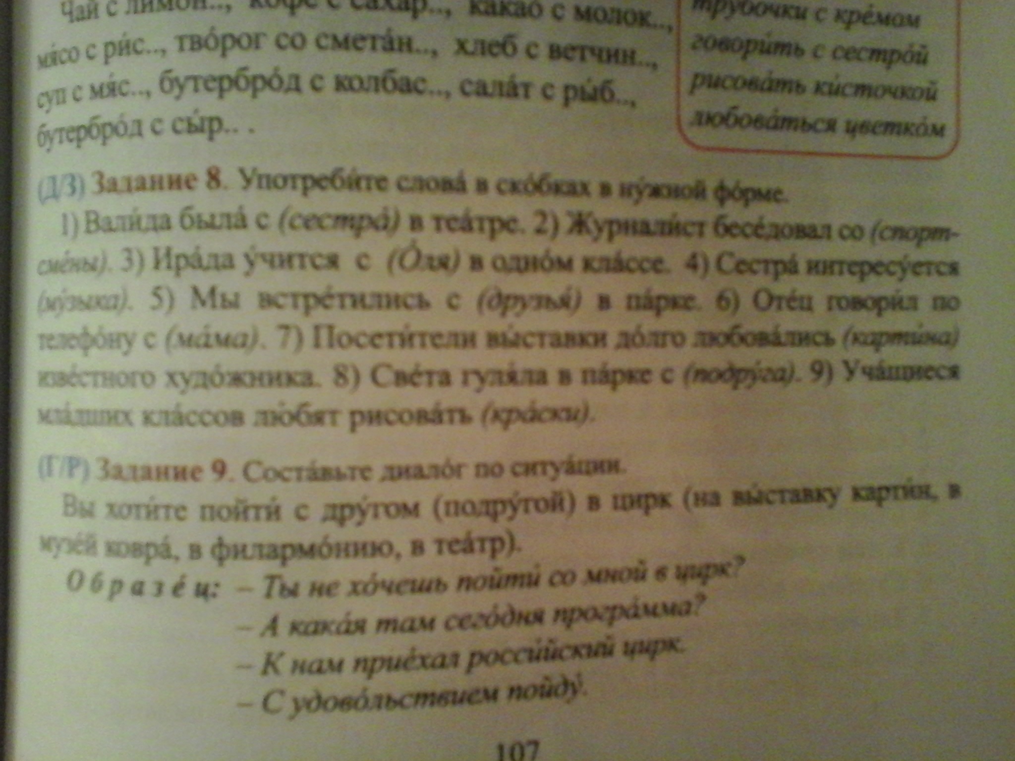 1 сестой 2со спортсменами 3 олей 4 музыкой 5 друзьями 6с мамой 7 картинами 8 с подругой 9 красками