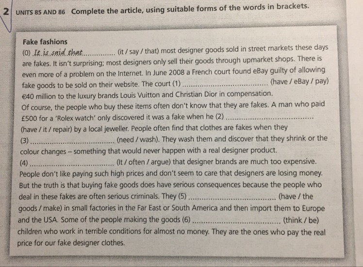 1 had eBay pay 2 was having it repaired 3 need washing 4 it is often argued 5 have the goods made 6 are thought to be