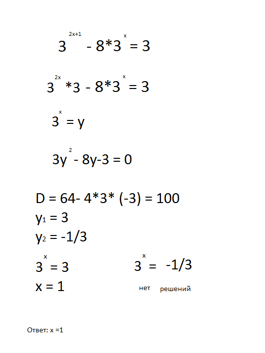 3(в степени 2х+1)-8*3(в степени х)=3. что делать с восьмеркой? запамятовала( подскажите,пожалуйста)