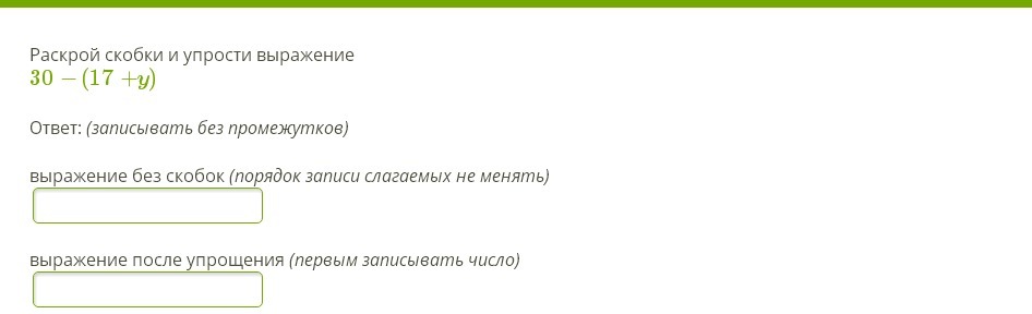 Выражение без скобок (знак минуса перед скобкой меняет в ней знаки):