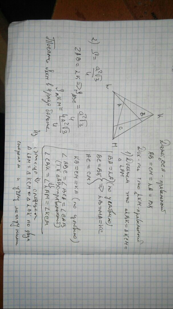треугольники KBL, KMA, KBC равны по двум сторонам и углу между ними: