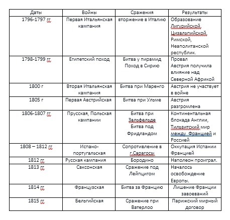 Ответ есть в приложении; рассмотрены все крупные кампании Наполеона