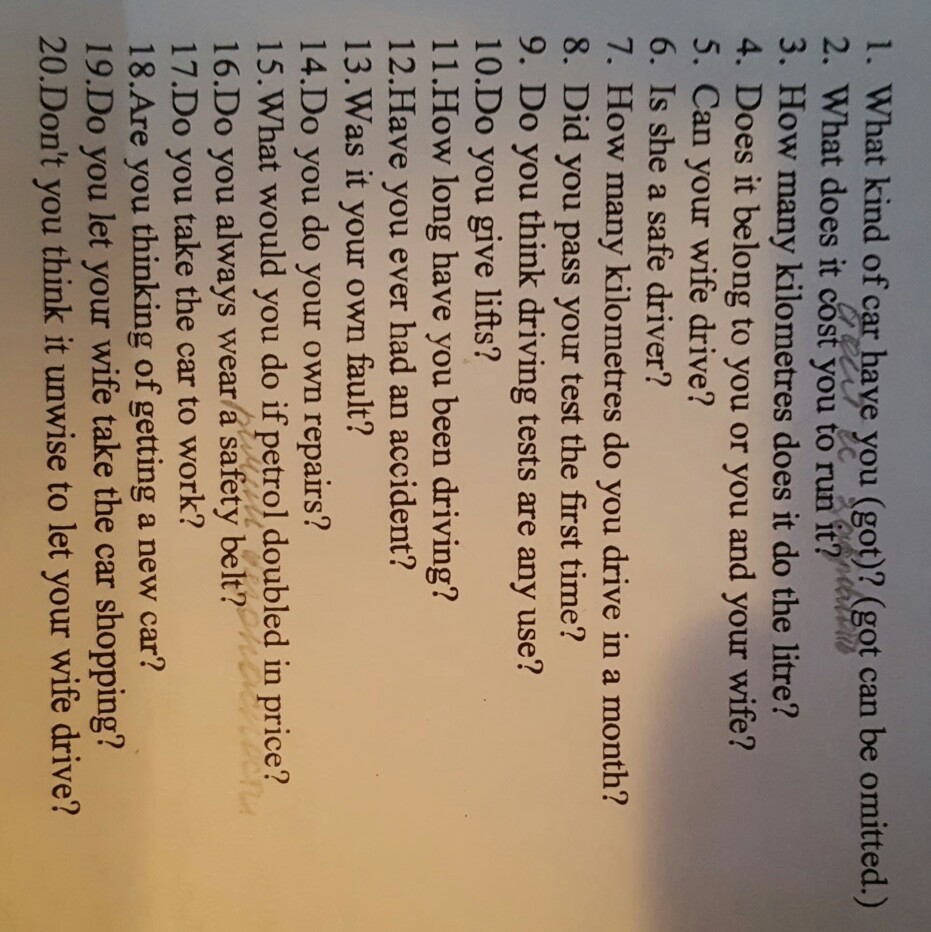 20 She wondered if I did not think it was unwise to let my wife drive.