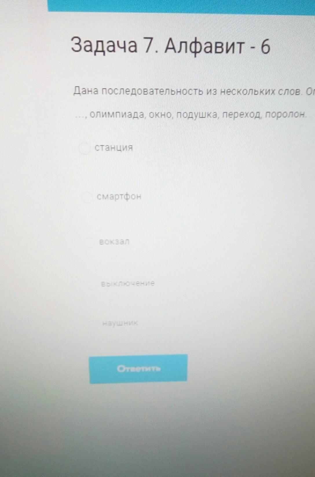 Дана последовательность из нескольких слов Определите какое слово должно быть первым Олимпиада окно подушкой переход поролон