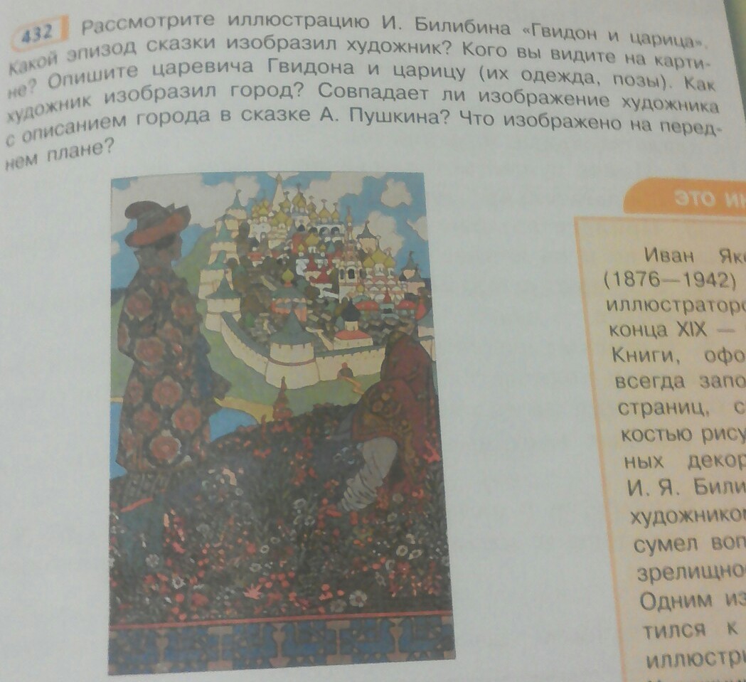 На картине изображён момент когда Гнидон и его мать Царица просыпаются и видят пред собой город с золотыми куполами. Их позы говорят о неожиданности
