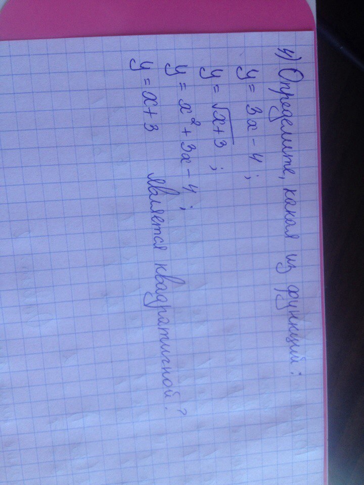у=х^2+3х-4 является квадратичной функцией,т.к. соответствует виду ах^2 + bx+c