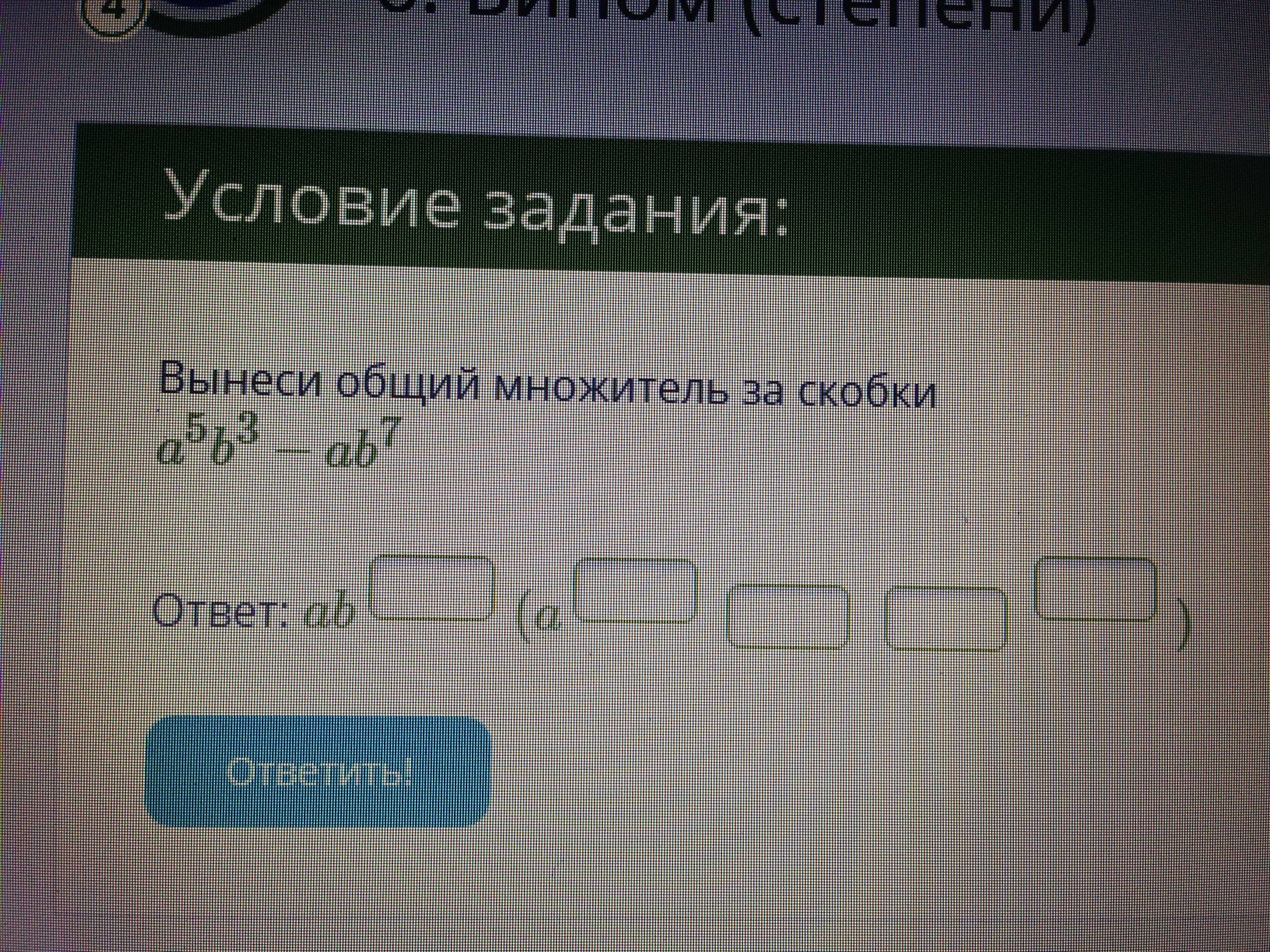 а⁵b³-ab⁷=ab³(a⁴-b⁴)