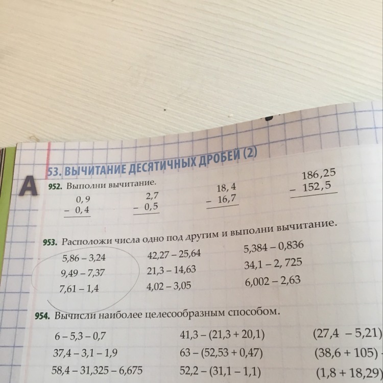 Прошу вас есть номер 953 1 столбик тема:вычитание десятичных дробей прошу вас это сделать