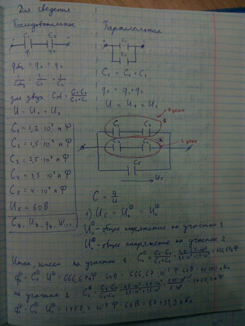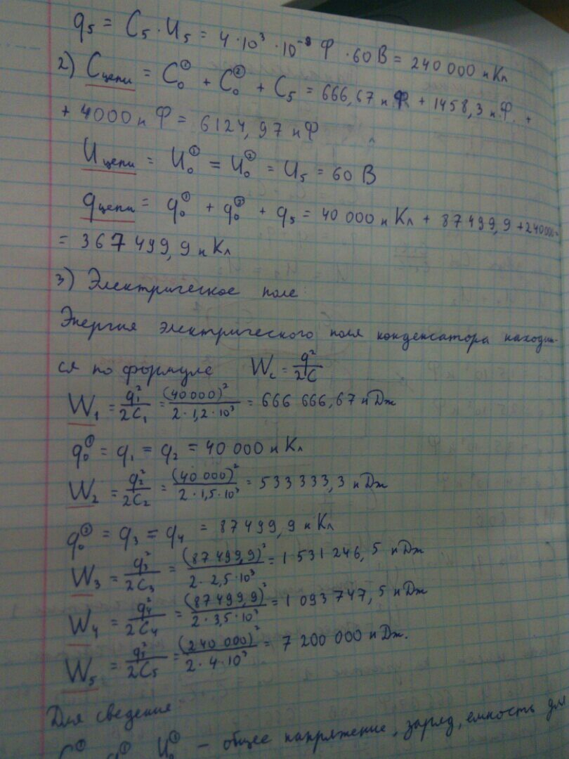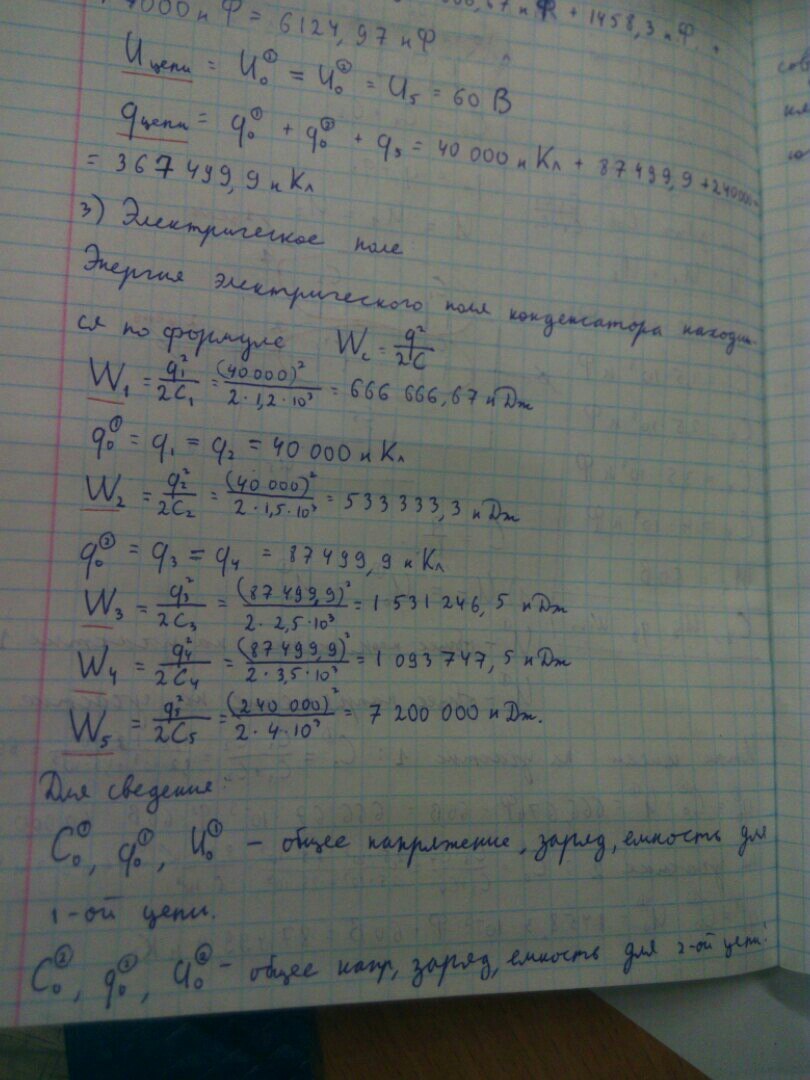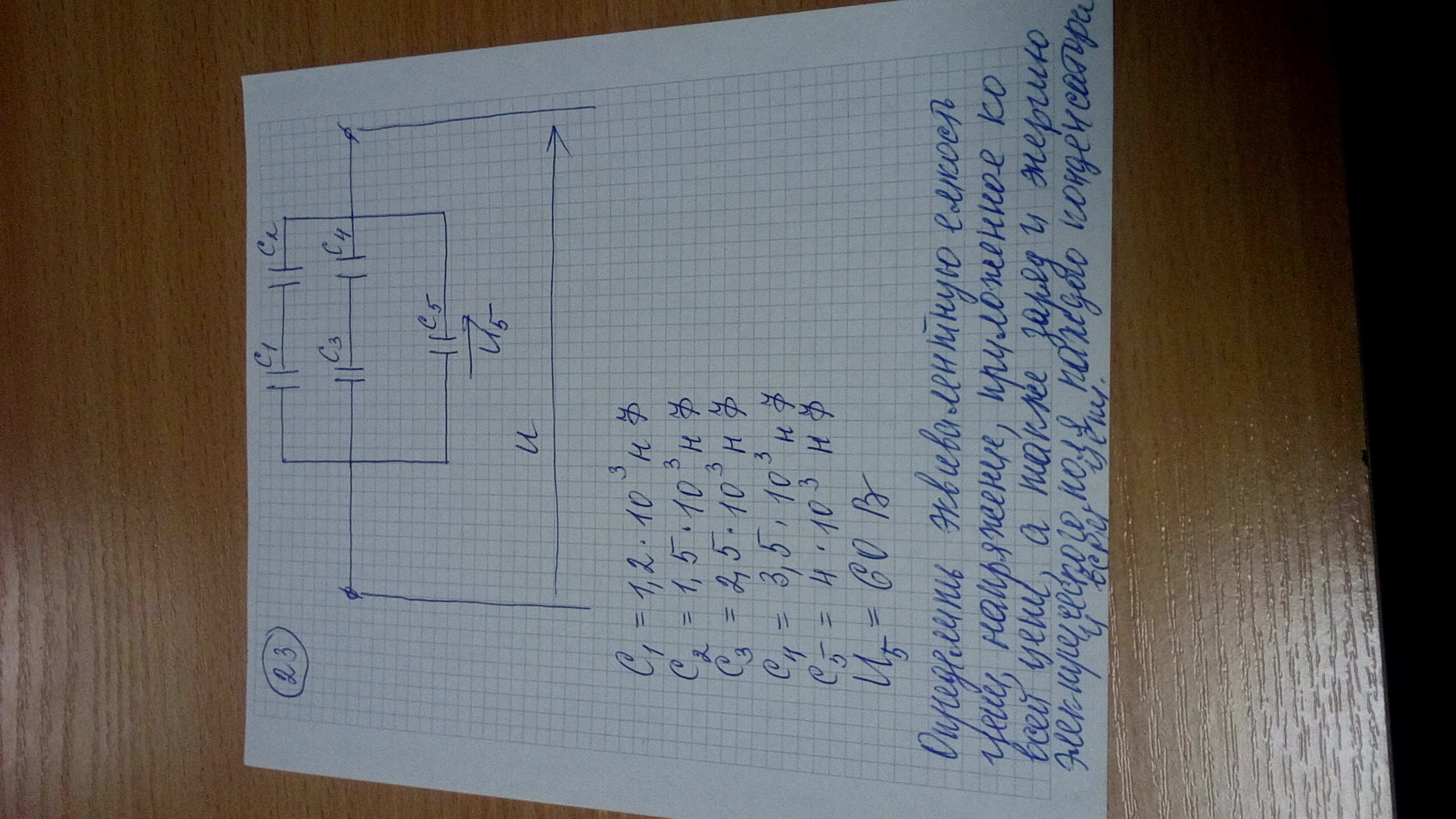 определить эквивалентную емкость цепи,напряжение,приложенное ко всей цепи,а также заряд и энергию электрического поля каждого конденсатора и всей цепи.