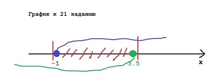 Судя по графику, x принадлежит промежутку [-1, 3.5]. Целые числа, которые в него входят: -1, 1, 2, 3