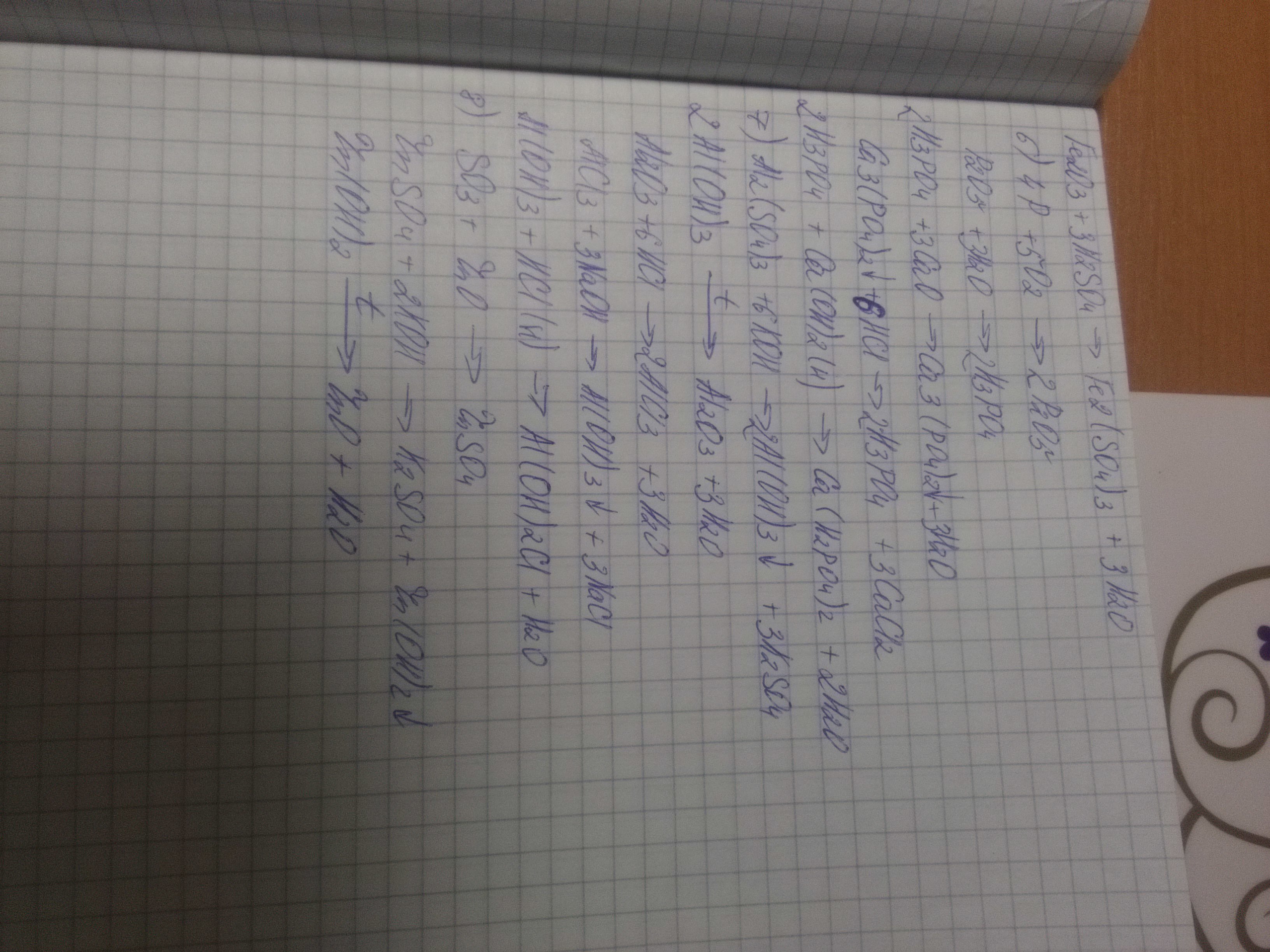 7) Al2(SO4)3 ->Al(OH)3 ->Al2O3 ->AlCl3 ->Al(OH)3 ->Al(OH)2Cl