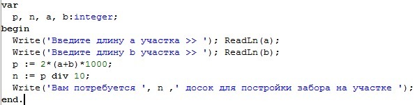 Write('Вам потребуется ', n ,' досок для постройки забора на участке ');