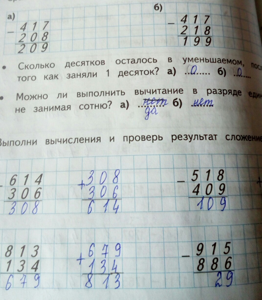 •сколько десятков осталось в уменьшаемом, после того как заняли 1 десяток? а)……… б)………