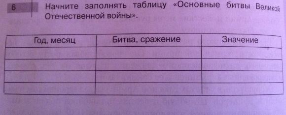 заполните таблицу «Основные битвы Великой Отечественной войны»