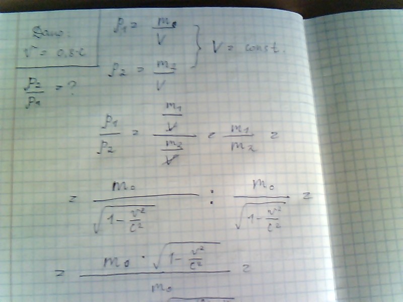 Во сколько раз изменится плотность тела при его движении со скоростью 0,8с ( с – скорость света).