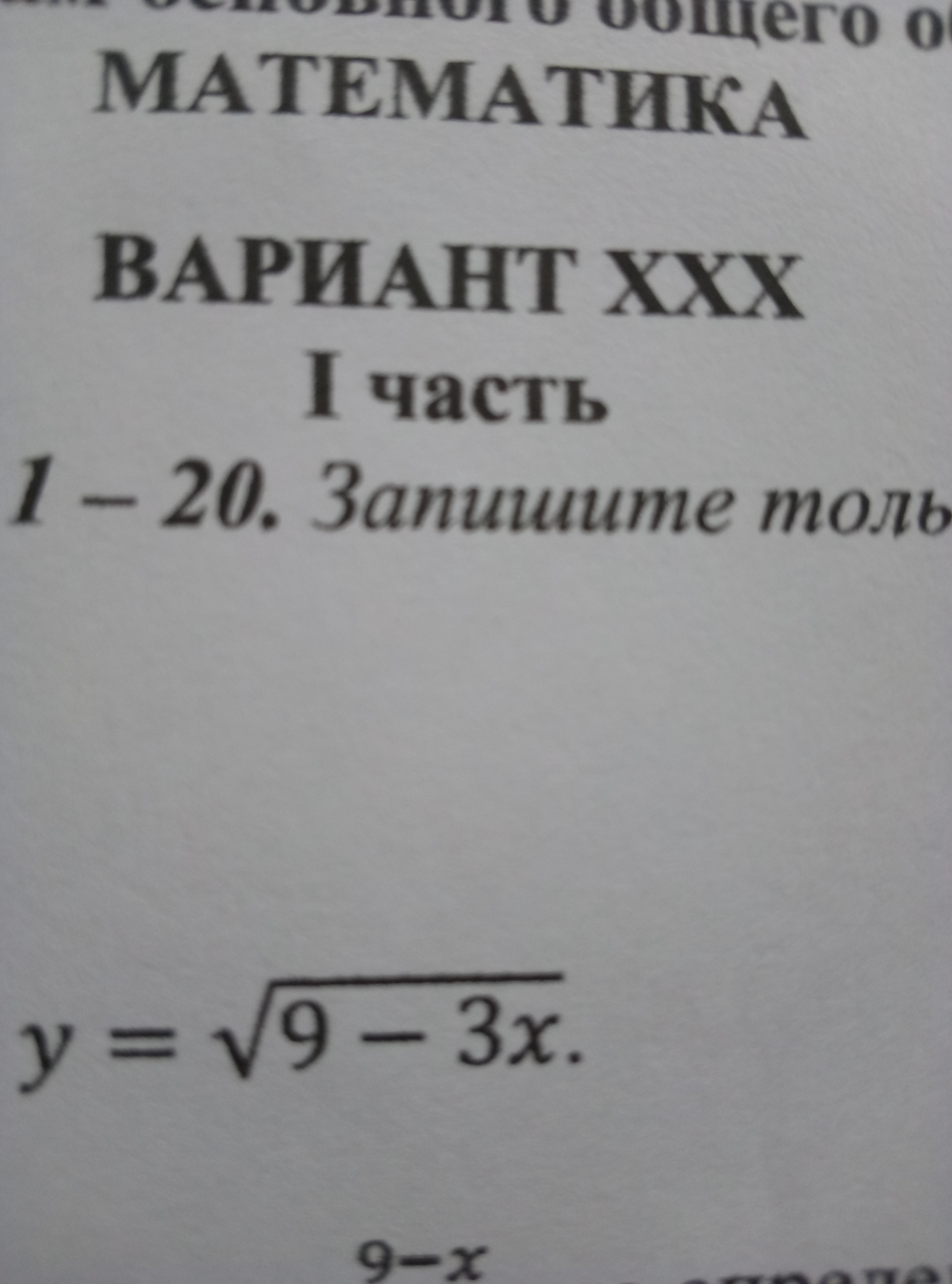 так как у нас корень четной степени, следовательно подкоренное выражение должно быть положительно. получаем неравенство: 9-3x>=0, -3x>=-9, x<=3. Ответ : от(- бесконечности до 3) . 3-входит.