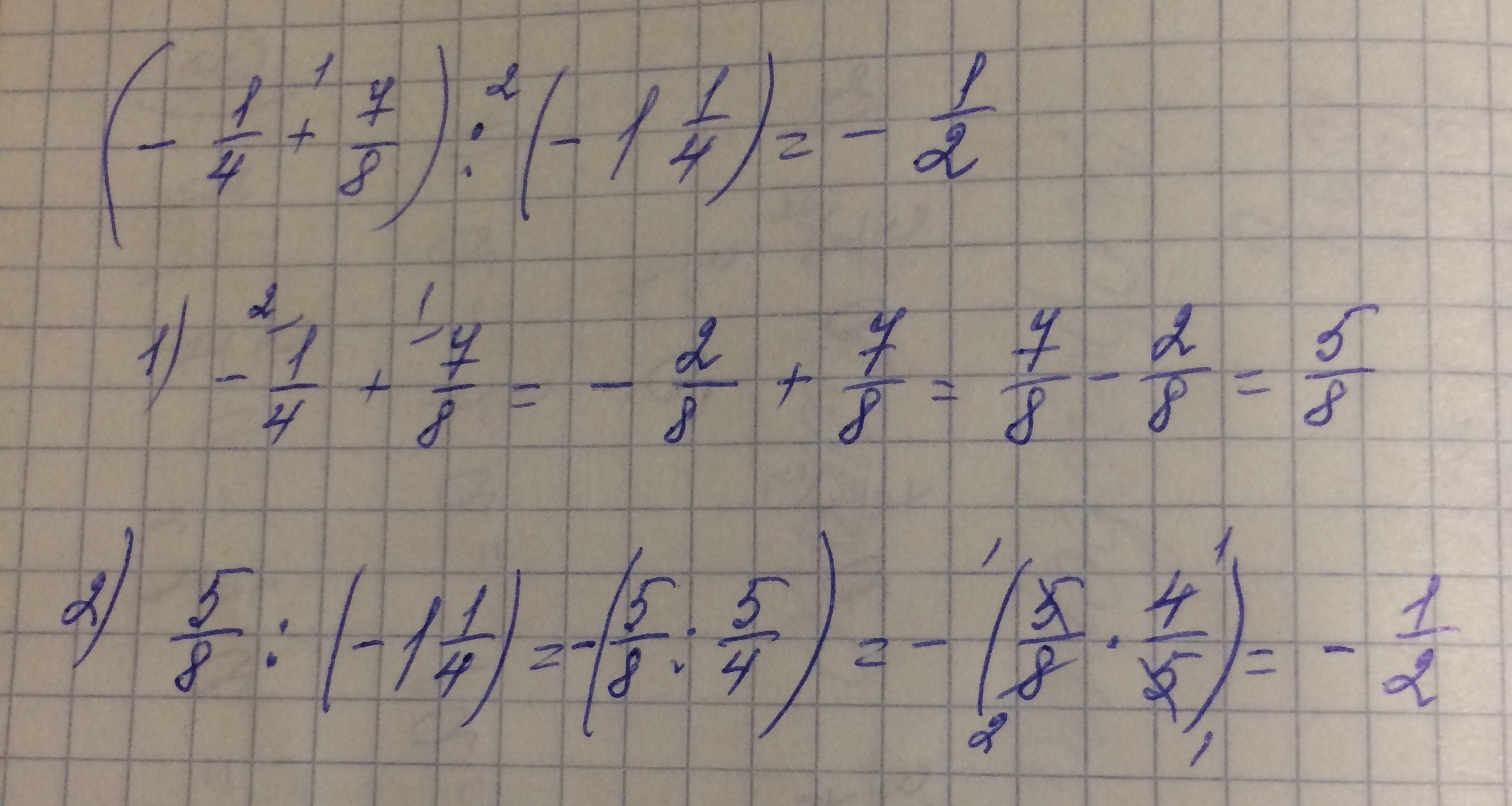 2) 5/8 : ( - 1 1/4 ) = 5/8 : ( - 5/4 ) = - 1/2