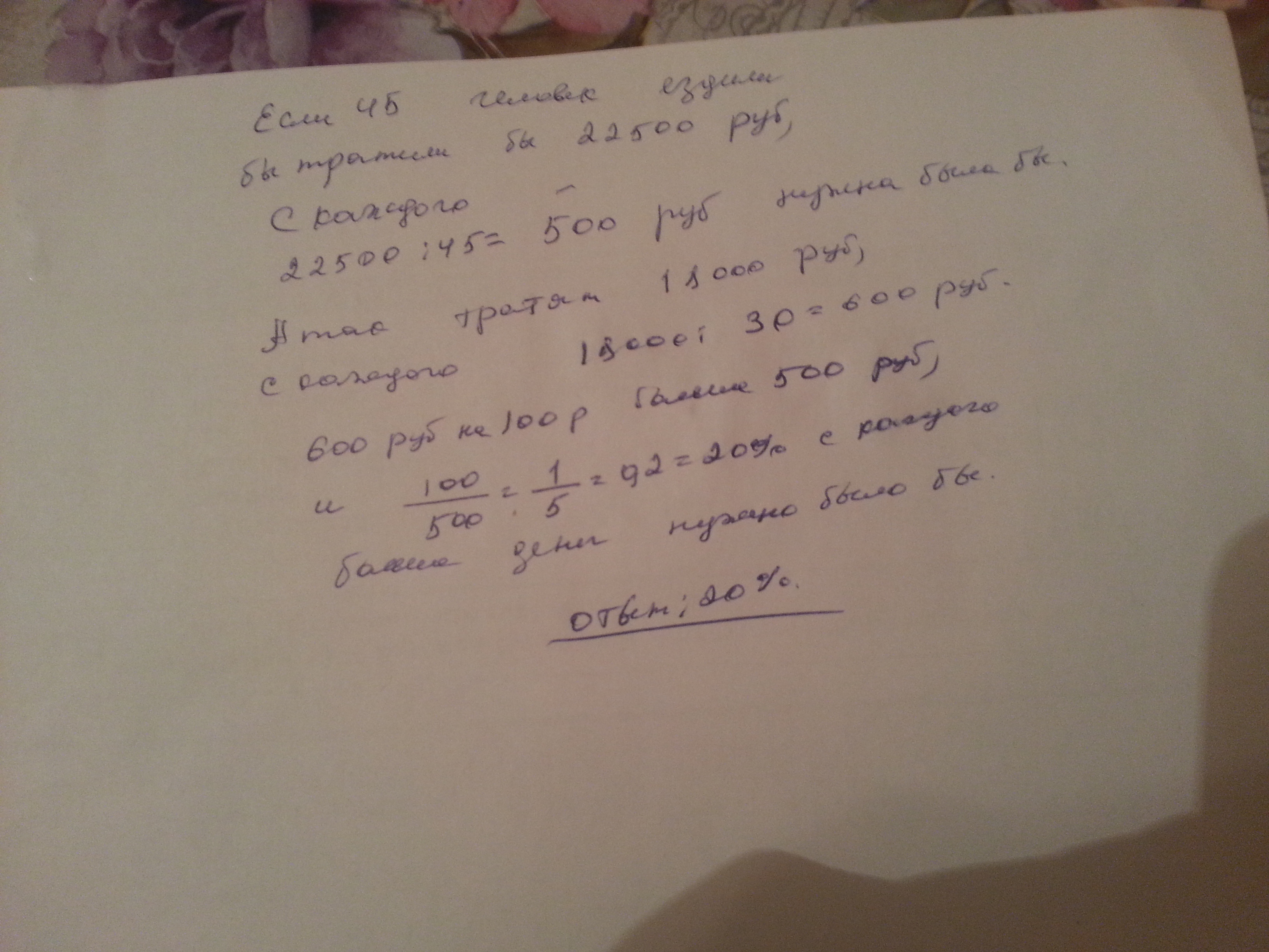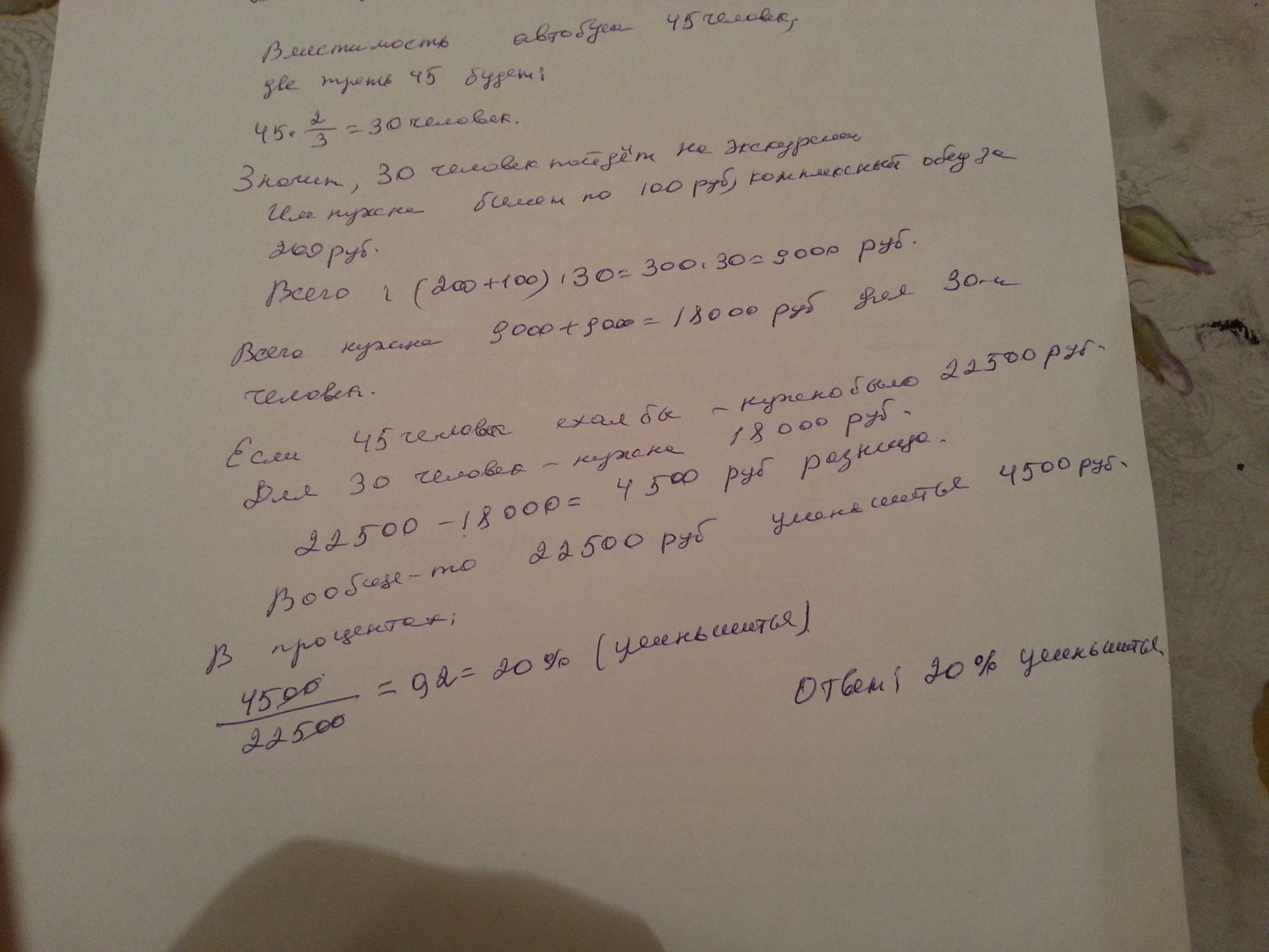 На сколько процентов увеличиться нужная сумма (22500 р) для участия, если автобус будет заполнен на две трети вместимости?