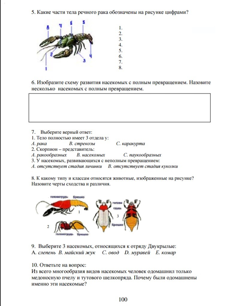 1 - Антенны; 2 - Антеннулы; 3 - Ходильные ноги; 4 - Плавательные ноги; 5 - Брюшко; 6 - Головогрудь; 8 - Клешня