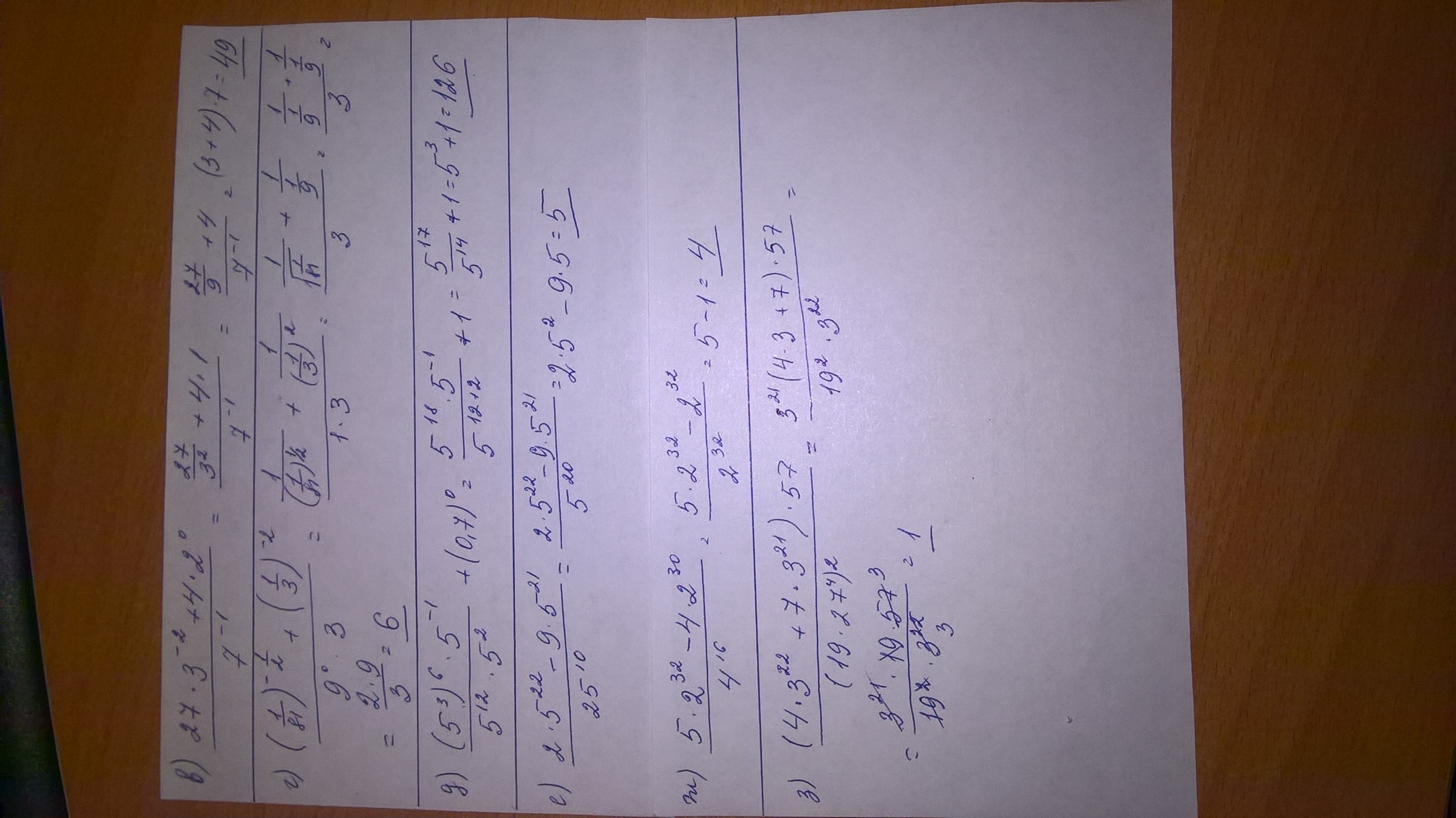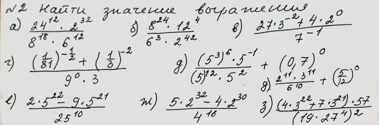 Учитываем, что любое число в нулевой степени равно 1. Если степень отрицательная, то его нужно перенести в знаменатель с положительной степенью.