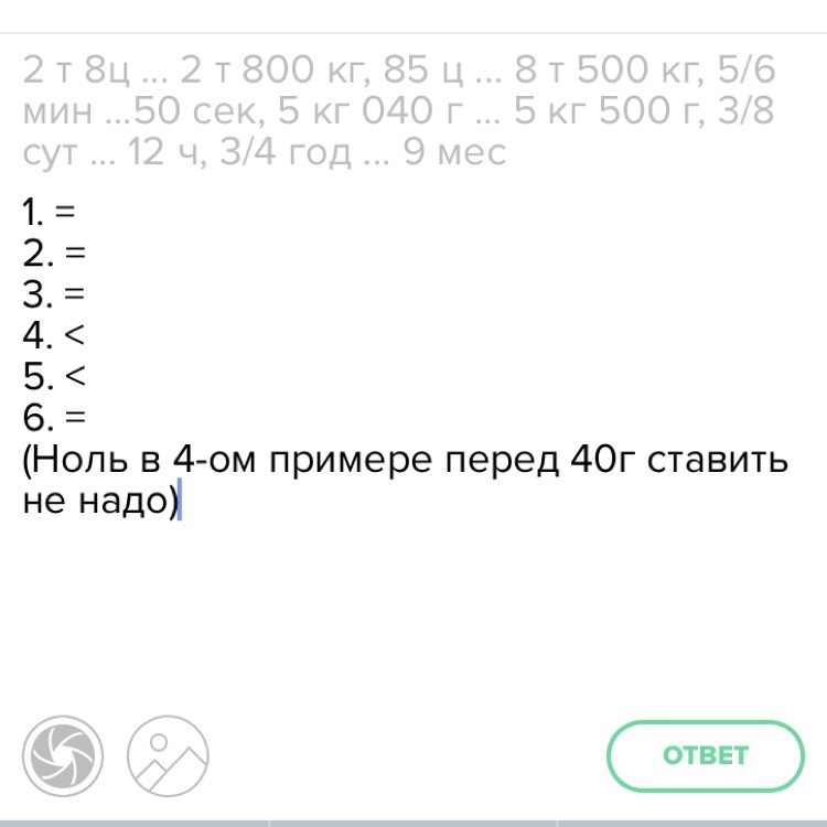 2 т 8ц ... 2 т 800 кг, 85 ц ... 8 т 500 кг, 5/6 мин ...50 сек, 5 кг 040 г ... 5 кг 500 г, 3/8 сут ... 12 ч, 3/4 год ... 9 мес