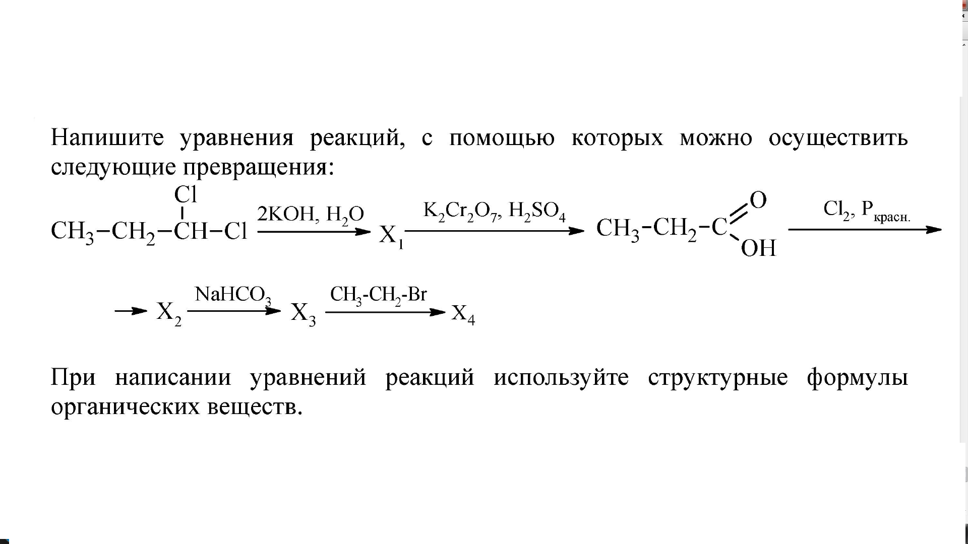 3) CH3-CH2-COOH + Cl2 --> CH3-CHCl-COOH + HCl