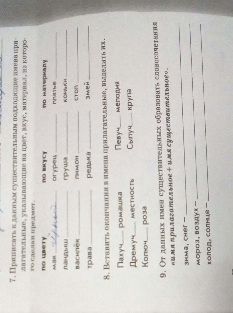 Пахучая ромашка, дремучая местность, колючая роза,певучая мелодия,сыпучая крупа