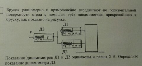 Если показания динамометров Д 1 и Д 2 одинаковы и равны 2 Н. , следовательно 2+2=4 Н.