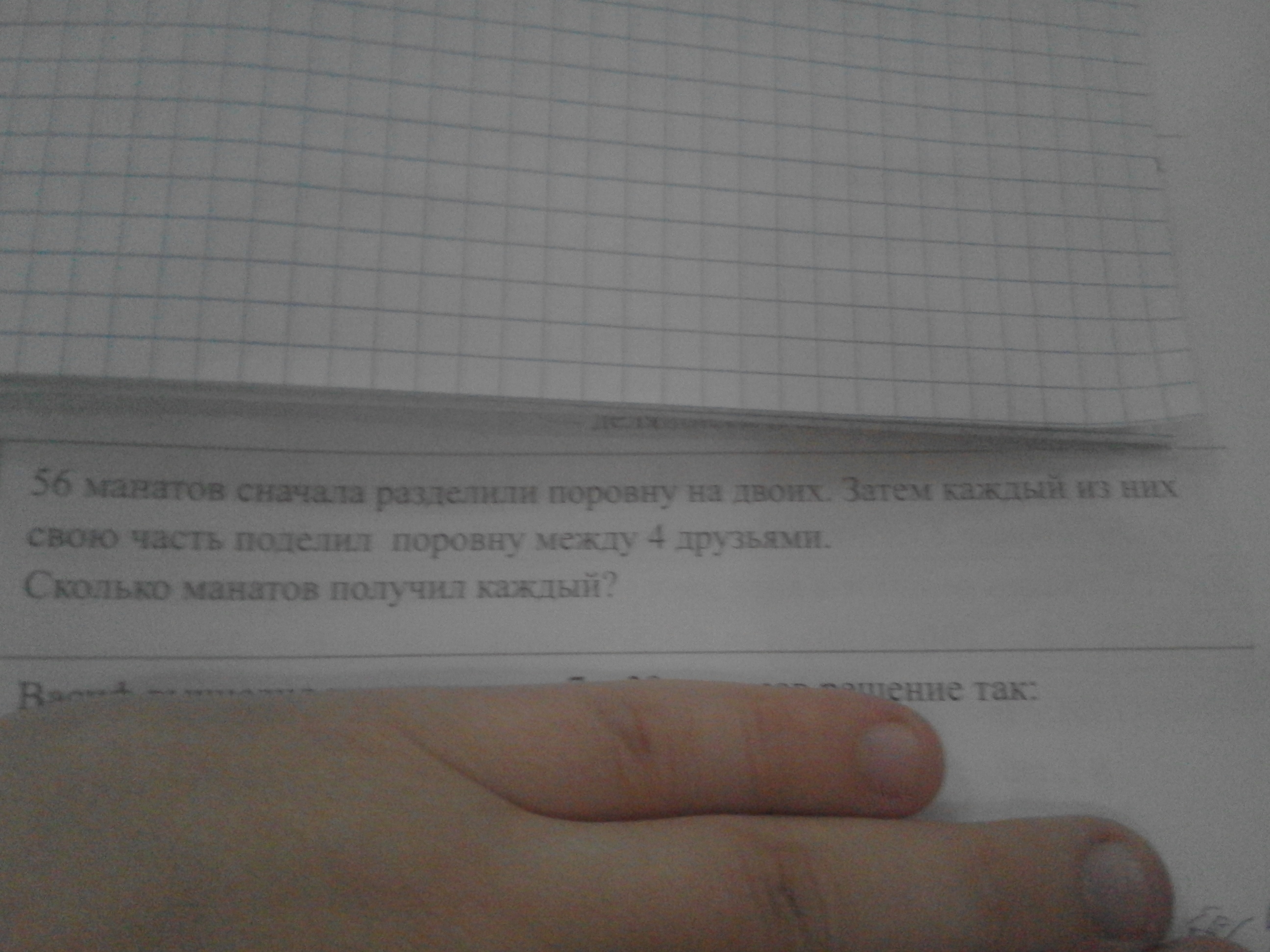Была разделено на двоих по 28 по плану а они разделили на 4друзьям по 7