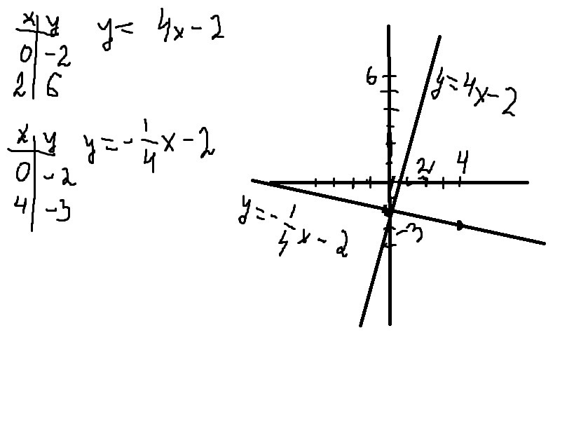 графики у=4х-2 и у=-14х-2 пересекаются в т.(0;-2)