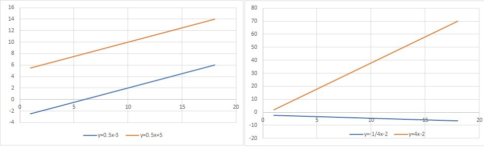 графики у=0,5х-3 и у=0,5х+5 параллельны